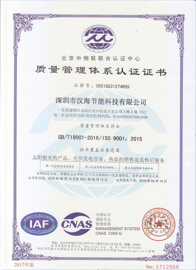深圳市漢海節(jié)能科技有限公司成立于2011年,注冊(cè)資金6000萬(wàn)元,總部設(shè)在深圳,是一家集設(shè)計(jì)、研發(fā)、施工于一體的專(zhuān)業(yè)化從事太陽(yáng)能中央熱水工程、熱泵中央熱水工程、中央空調(diào)、光伏發(fā)電、水處理等新能源及節(jié)能環(huán)保行業(yè)的綜合服務(wù)商和工程商。在將近10年的發(fā)展歷程中,始終走在行業(yè)發(fā)展的前沿,是專(zhuān)業(yè)從事太陽(yáng)能光熱、光伏,空氣源、太陽(yáng)能熱水工程、水源熱泵,中央空調(diào),水處理產(chǎn)品的設(shè)計(jì)、安裝、售后服務(wù)為一體的高新技術(shù)企業(yè);是專(zhuān)業(yè)提供太陽(yáng)能中央熱水工程、熱泵中央熱水工程、中央空調(diào)工程、光伏發(fā)電工程、水處理工程、太陽(yáng)能熱水工程等全面解決方案的供應(yīng)商和工程商,產(chǎn)品涵蓋太陽(yáng)能集熱器、空氣源熱泵、水源熱泵、中央空調(diào)、光伏組件、太陽(yáng)能熱水工程等,是新能源的倡導(dǎo)者和推動(dòng)者。公司成立以來(lái),始終秉承“誠(chéng)信、責(zé)任、專(zhuān)業(yè)、高效”的服務(wù)宗旨,以市場(chǎng)需求為導(dǎo)向,以為客戶創(chuàng)造價(jià)值為己任的精神,不斷開(kāi)拓創(chuàng)新,通過(guò)多年的快速發(fā)展,公司綜合實(shí)力躍居行業(yè)前列。漢海擁有一支經(jīng)驗(yàn)豐富、善打硬仗的專(zhuān)業(yè)高效團(tuán)隊(duì);擁有一批專(zhuān)業(yè)的高級(jí)工程師、中級(jí)工程師、二級(jí)建造師、造價(jià)工程師、電氣設(shè)計(jì)師、給排水設(shè)計(jì)師;擁有一批機(jī)電、安防、水、電等專(zhuān)業(yè)技術(shù)施工和售后人員,配備先進(jìn)齊全,實(shí)力雄厚,技術(shù)領(lǐng)先。漢海以質(zhì)量樹(shù)信譽(yù)、以工藝立標(biāo)桿、以管理創(chuàng)效益、以服務(wù)得人心,工藝水平在業(yè)界獨(dú)樹(shù)一幟,成為行業(yè)模仿的典范。漢海承建的機(jī)電工程(設(shè)計(jì)、施工)涉及星級(jí)酒店、賓館、高檔辦公樓、花園別墅、住宅小區(qū)、學(xué)校、水療中心、工廠等各種類(lèi)型的工程,工程項(xiàng)目遍布全國(guó)各地。漢海將致力于成為全球信賴的新能源綜合服務(wù)商,為客戶提供新能源的全方位解決方案。未來(lái),漢海將依托國(guó)家政策,積極開(kāi)拓粵港澳大灣區(qū)、中國(guó)特色社會(huì)主義先行示范區(qū)市場(chǎng)及“一帶一路”沿線國(guó)際市場(chǎng),推動(dòng)新能源的新輝煌。